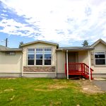 A floating concrete step leads effortlessly into the walkway composed of elongated concrete pavers that float over manicured grass. The alternating bands of green and stone create a graphic, almost meditative pattern—an understated nod to Zen garden aesthetics. Minimal landscaping along the foundation emphasizes restraint, with slender ornamental grasses and low-lying shrubs adding just enough texture to ground the space without distraction.