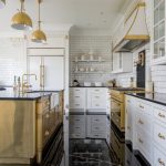This striking entryway marries timeless elegance with contemporary contrast, creating a bold first impression through a masterful use of tone and texture. The dominant black façade and glossy midnight front door establish a dramatic focal point, while crisp white trim and paneling highlight the architectural symmetry, offering a refined nod to traditional design.The rich black brickwork underfoot grounds the palette with modern sophistication, its matte texture subtly reflecting light, adding depth and visual structure. Soft, curved-back taupe stools introduce minimalist forms that break the rigidity of the geometry, their Scandinavian simplicity contrasting beautifully with the glossy, formal lines of the door and paned side windows.A woven basket planter filled with fresh greenery and blush-toned florals rests casually atop one stool, bringing life and balance to the monochrome scheme. The golden hardware on the door — a classic latch and handle — introduces a whisper of warmth and heritage charm, enhancing the door’s elegant silhouette.Above, a single milk glass pendant light with vintage flair casts a soft, welcoming glow, completing the ensemble with quiet sophistication. This entryway doesn’t just invite guests in — it announces a refined and deeply intentional design sensibility.